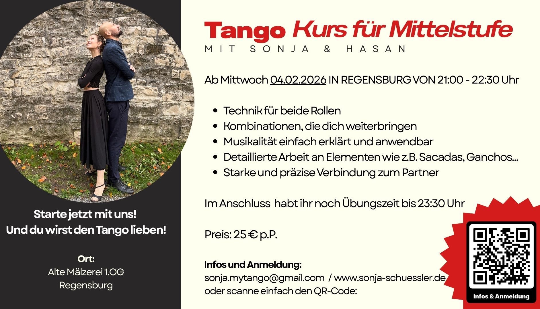 Anmeldung am besten über unsere WhatApp-Gruppe - oder einfach eine kurze Nachricht an sonja.mytango@gmail.com.